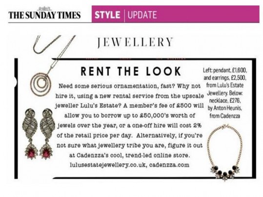 Need some serious ornamentation, fast? Why not hire it, using a new rental service from the upscale jeweller Lulu’s Estate Jewellery? A member fee of £ 500 will allow you to borrow up to £ 50,000’s worth of jewels over the year, or a one off hire will cost 2% of the retail...
